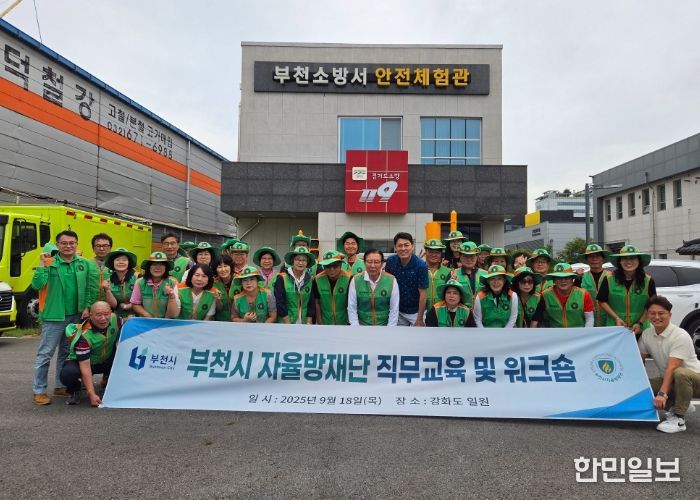 한민일보 서울포커스 김윤이 기자 | 부천시는 지난 18일 부천시 자율방재단(단장 김태웅)과 오정119안전센터가 강화도 일원에서 ‘2025년 하반기 직무교육 및 워크숍’을 실시했다고 19일 밝혔다. 이번 교육은 자율방재단 동대표들의 재난 대응 역량과 조직 결속력 강화를 목적으로 진행됐다.
