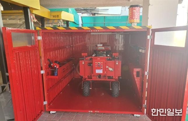 이동식 소방펌프는 지난 9월 5일 전통시장에 배치된 장비로, 도로가 협소해 소방차량 진입이 어려운 전통시장과 상가 밀집지역에서 화재 발생 시 신속한 초기 진압에 활용된다.
