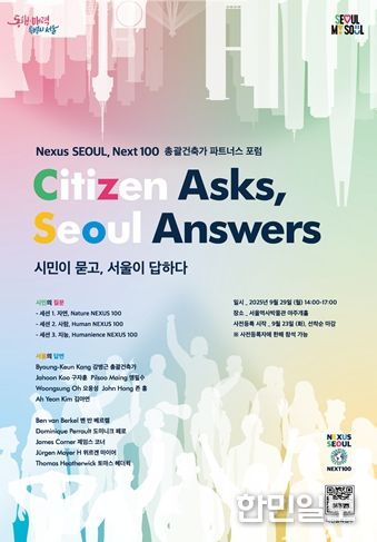 한민일보 서울포커스 국용호 기자 | 서울시는 오는 9월 29일 오후 2시, 서울역사박물관 야주개홀에서 『Nexus 서울 Next100: 제2차 총괄건축가 파트너스 포럼』을 개최한다. 이번 포럼은 지난 3월 21일 열린 제1차 포럼의 연속 기획으로, 제시된 미래도시 비전에 대해 이번에는 시민이 질문하고 전문가가 답하는 공론의 장이다.