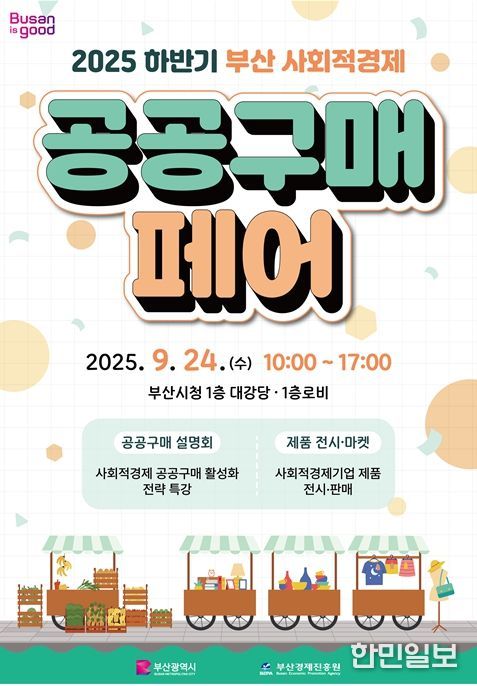 한민일보 서울포커스 임광현 기자 | 부산시는 내일(24일) 오전 10시 시청 1층 대강당과 로비에서 '2025 하반기 부산 사회적경제 공공구매 페어'를 개최한다고 밝혔다.