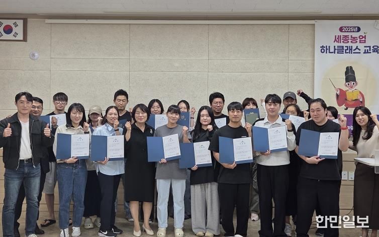 한민일보 서울포커스 김윤이 기자 | 세종특별자치시 농업기술센터는 지난 22일 센터 종합교육관에서 ‘세종청년농업 하나클래스’ 교육을 성공적으로 마치고 수료식을 개최했다.
