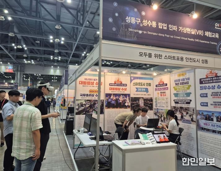 한민일보 서울포커스 임광현 기자 | 서울 성동구는 9월 17일부터 19일까지 경기도 고양 킨텍스에서 열린 ‘2025 대한민국 안전산업박람회(K-SAFETY EXPO 2025)’에 참가해 전국 최초 성수역·연무장길·앤더슨씨 등 지역 주요 일상공간을 배경으로 한 ‘VR(가상현실) 인파위기관리 체험교육’ 프로그램을 선보이며 큰 주목을 받았다고 밝혔다.