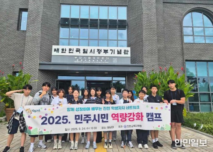 한민일보 서울포커스 김다남 기자 | 충청북도진천교육지원청은 24일 청남대에서 진천 관내 초·중학교 학생자치회 대표 20여 명이 참여한 가운데 '2025. 민주시민 역량강화 캠프'를 개최했다.
