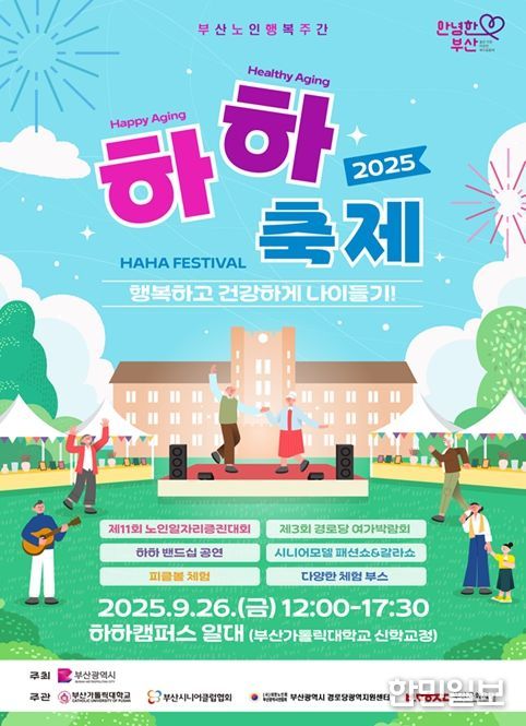 한민일보 서울포커스 임광현 기자 | 부산시는 전국 최초로 지역대학과 협력해 조성 중인 하하캠퍼스(부산가톨릭대학교 신학교정) 일대에서, 내일(26일) 정오(12시)에 어르신들을 위한 축제의 장인 '2025년 하하(HAHA) 페스티벌'을 개최한다고 밝혔다.