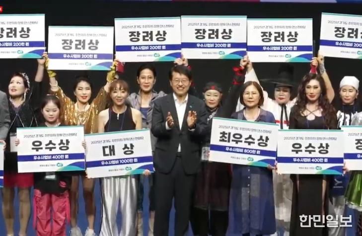 한민일보 서울포커스 김윤이 기자 | 경기도는 24일 의정부문화재단 대극장에서 ‘2025년 경기도 주민자치 장끼 댄스 한마당’을 열고, 성남시 ‘댄싱덕(춤추는 오리)’ 팀에 대상을 수여했다.