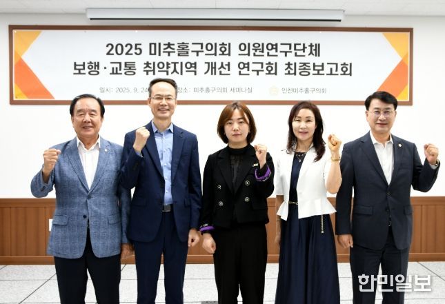 한민일보 서울포커스 백진욱 기자 | 인천광역시 미추홀구의회 의원연구단체 '보행·교통 취약지역 개선 연구회'(대표의원 박수연, 연구의원 장규철·배상록·김태계)가 2025년 9월 24일 미추홀구의회 세미나실에서 연구용역 최종보고회를 개최하고 성공적으로 마무리했다.