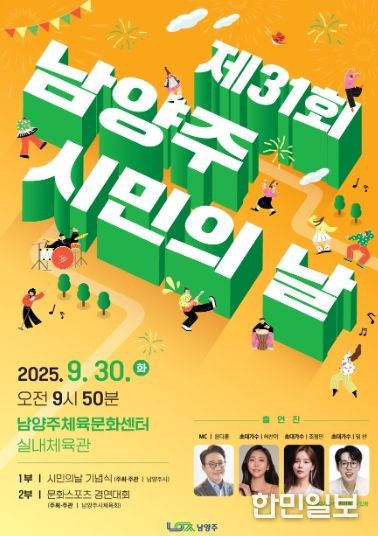 한민일보 서울포커스 김성윤 기자 | 남양주시는 오는 30일 오전 9시 50분부터 남양주체육문화센터 실내체육관에서 ‘제31회 시민의 날 기념행사’를 개최한다.