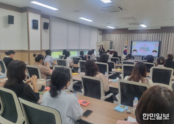 한민일보 서울포커스 김다남 기자 | 충청북도청주교육지원청은 9월 25일 관내 유․초이음교육 운영 유치원 교사들을 대상으로 유‧초 이음 역량강화 연수 및 사례 나눔을 실시했다. 이번 연수에는 관내 43명의 유치원 교사 중 40명이 참석하여 높은 참여율을 보였다.