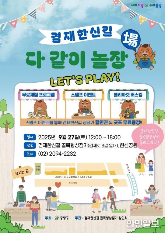 한민일보 서울포커스 임광현 기자 | 중랑구는 오는 9월 27일, 겸재한신길 골목형상점가(겸재로3길 일대)와 한신공원에서 ‘겸재한신길 다 같이 놀장(場)’ 축제를 개최한다.