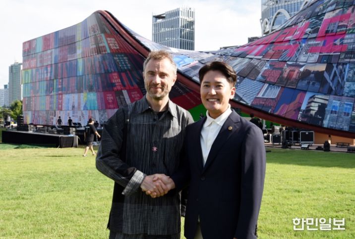 한민일보 서울포커스 국용호 기자 | 서울특별시의회 주택공간위원회 이민석 부위원장(국민의힘, 마포1)은 25일 개막을 하루 앞둔 '제5회 서울도시건축비엔날레' 현장을 찾아 최종 준비 상황을 점검했다. 이날 점검에는 이번 비엔날레의 총감독을 맡은 토마스 헤더윅(Thomas Heatherwick)이 함께했다.