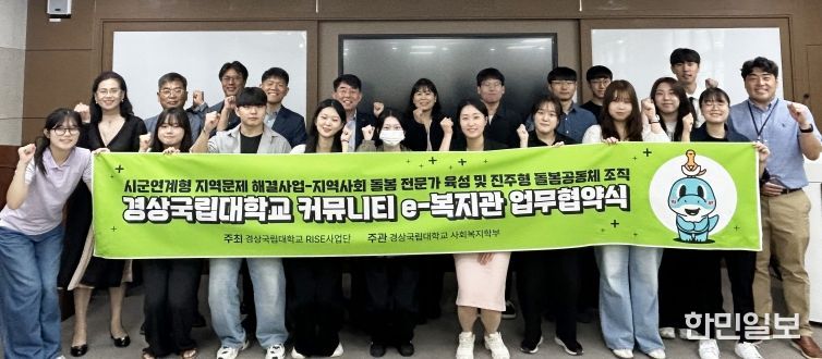 한민일보 서울포커스 박근원 기자 | 경상국립대학교라이즈(RISE)사업단 지역리빙랩(진주시) ‘경상국립대학교 커뮤니티 e-복지관’(대학 부설 가상복지관)은 9월 24일 오전 가좌캠퍼스 사회과학관 글로벌룸에서 진주시사회복지협의회, 경남서부권노인보호전문기관, 진주시평거종합사회복지관, 진주시가좌사회복지관, 경남서부권돌봄노동자지원센터와 업무협약을 체결했다.