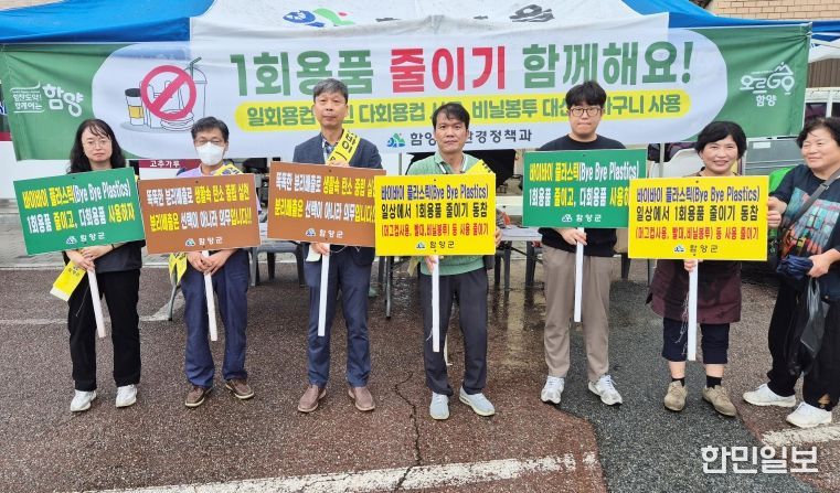 한민일보 서울포커스 김서윤 기자 | 함양군은 지난 25일 안의시장 일원에서 군청 환경정책과와 안의면사무소의 주최로 ‘1회용품 줄이기 캠페인’을 진행했다.