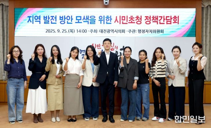 한민일보 서울포커스 유한희 기자 | 대전시의회 25일 시의회 소통실에서 이중호 의원(국민의힘, 서구 5) 주재로 ‘지역 발전 방안 모색을 위한 시민초청 정책간담회’를 개최했다.