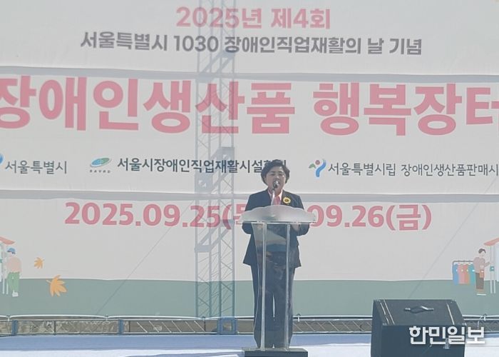 한민일보 서울포커스 국용호 기자 | 서울특별시의회 보건복지위원회 김영옥 위원장(국민의힘, 광진3)은 9월 25일부터 26일까지 양일간 반포한강공원 달빛광장에서 개최되는 『2025년 제4회 장애인직업재활의 날 기념 행복장터』에 참석해 장애인과 비장애인이 함께하는 화합의 장을 축하했다.