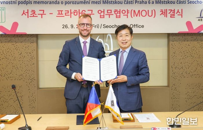 한민일보 서울포커스 곽중희 기자 | 서울 서초구는 지난 26일 구청 5층 대회의실에서 체코 프라하 6구와 문화, 예술, 교육 분야 등 상호 교류 우호증진을 위한 우호도시협정 양해각서(MOU)를 체결했다고 밝혔다.