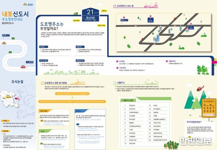 한민일보 서울포커스 박덕환 기자 | 충남도는 내포신도시의 신설 도로와 도시개발사업 변경 사항을 반영한 최신 도로명주소 안내도를 제작·배포했다고 28일 밝혔다.