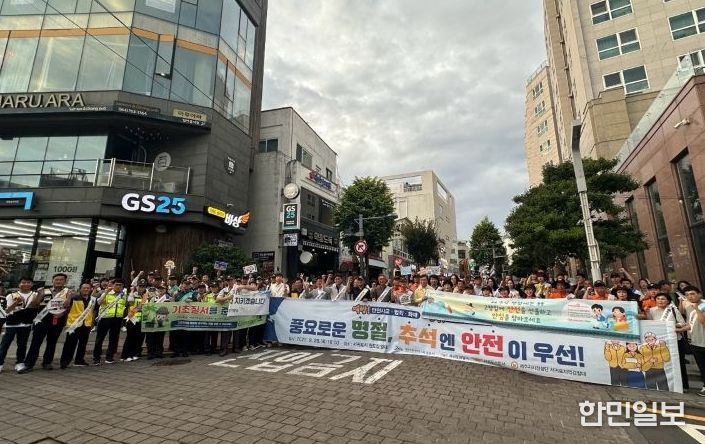 한민일보 서울포커스 김다남 기자 | 서귀포시는 9월 25일 18시부터 이중섭거리와 명동로, 중정로 등원도심 일대에서 행정과 경찰, 소방, 자치경찰 등 유관기관과 시민사회단체 등 120여 명이 참여한 가운데 추석맞이 시민안전 캠페인을 실시했다.