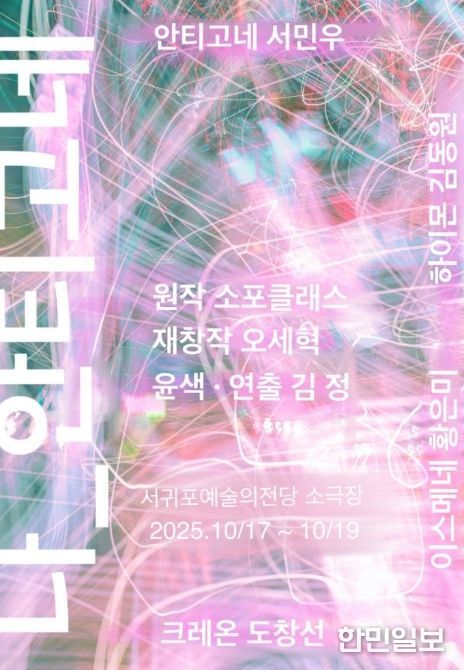 한민일보 서울포커스 김다남 기자 | 서귀포예술의전당은 2025 공연장상주단체육성지원사업의 일환으로 연극공동체다움의 신작 '나 안티고네'를 오는 10월 17일부터 19일까지 소극장에서 선보인다.