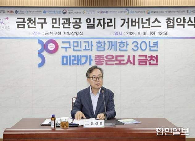 한민일보 서울포커스 곽중희 기자 | 금천구는 지역 내 일자리 창출 활성화를 위해 금천구 민관공 일자리 거버넌스를 구성하고, 30일 참여기관들이 모여 업무협약식을 개최했다고 밝혔다.