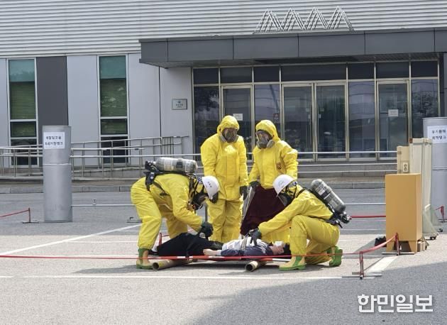 한민일보 서울포커스 김성윤 기자 | 용인특례시는 30일 처인구 백암면에 있는 제일약품㈜ 에서 유해화학물질 누출사고 대응 합동훈련을 진행했다.