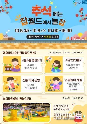 한민일보 서울포커스 임광현 기자 | 순천시는 오는 10월 5일부터 8일까지 추석 연휴를 맞아 순천만잡월드에서 '추석에는 잡월드에서 놀JOB~'이벤트를 개최한다.