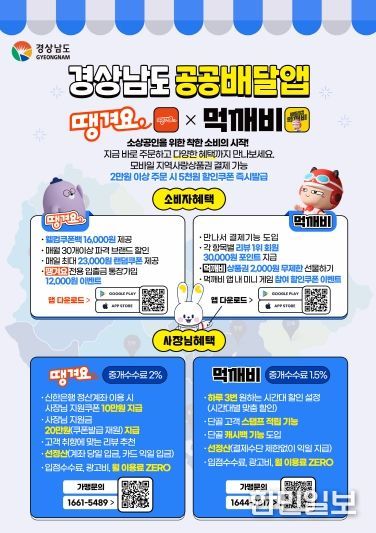 한민일보 서울포커스 김서윤 기자 | 함양군은 경상남도가 추진하는 공공배달앱 ‘땡겨요’와 ‘먹깨비’가 10월부터 본격 운영됨에 따라 군민과 소상공인을 대상으로 홍보 활동을 강화한다고 밝혔다.
