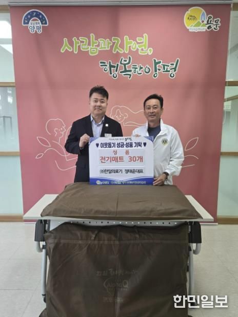 한민일보 서울포커스 차재만 기자 | 양평군 용문면은 ㈜한일의료기가 관내 취약계층을 위해 600만 원 상당의 전기매트 30개를 기탁했다고 밝혔다.