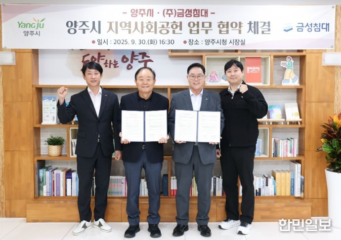 한민일보 서울포커스 차재만 기자 | 양주시가 지난 30일 시청 시장실에서 ㈜금성침대와 지역사회공헌 업무 협약을 체결했다.