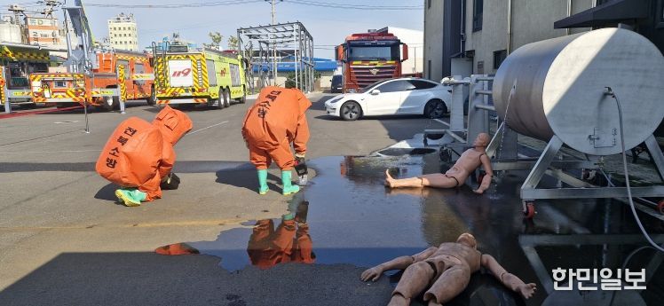 한민일보 서울포커스 최성훈 기자 | 전북특별자치도소방본부는 지난 1일 119특수대응단 화학구조대 청사에서 유해화학물질 누출 사고 대응 역량 강화를 위한 합동훈련을 실시했다.