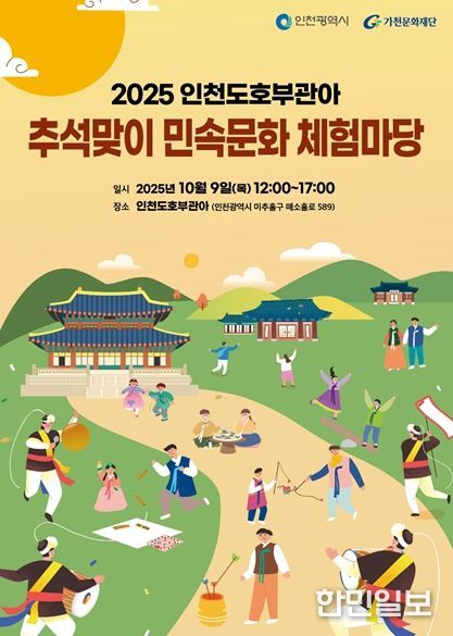 한민일보 서울포커스 유창렬 기자 | 인천광역시는 10월 9일 인천도호부관아에서 ‘2025 추석맞이 민속문화 체험마당’을 개최한다고 밝혔다.