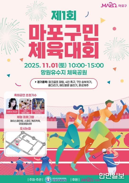 한민일보 서울포커스 박정민 기자 | 마포구는 ‘제1회 마포구민 체육대회’에 참가할 주민 선수단을 10월 17일까지 동별로 모집한다.