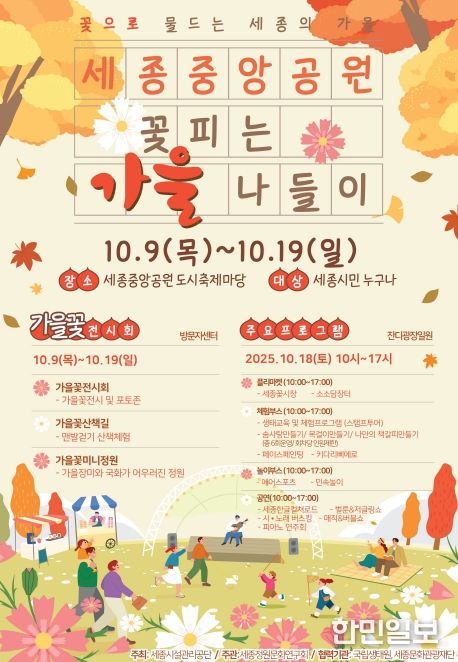 한민일보 서울포커스 김윤이 기자 | 가을의 정취가 절정에 달하는 10월, 세종중앙공원에서 꽃과 문화가 어우러진 축제가 열린다.