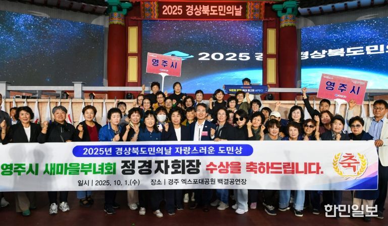 한민일보 서울포커스 김봉순 기자 | 영주시는 10월 1일 경주 엑스포대공원 백결공연장에서 열린 ‘2025년 도민의 날 기념식’에서 정경자 영주시 새마을부녀회장이 ‘영주시 자랑스러운 도민상’을 수상했다고 밝혔다.