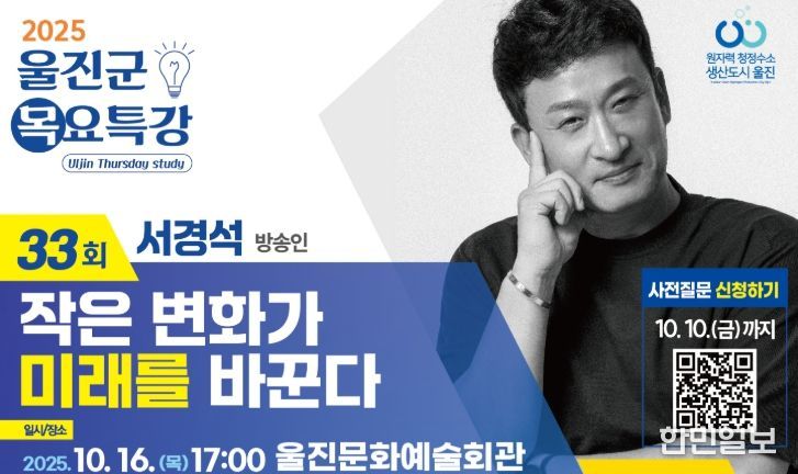 한민일보 서울포커스 김서윤 기자 | 울진군은 오는 10월 16일 오후 5시 후포면 울진문화예술회관에서 제33회 울진군 목요특강을 개최한다.
