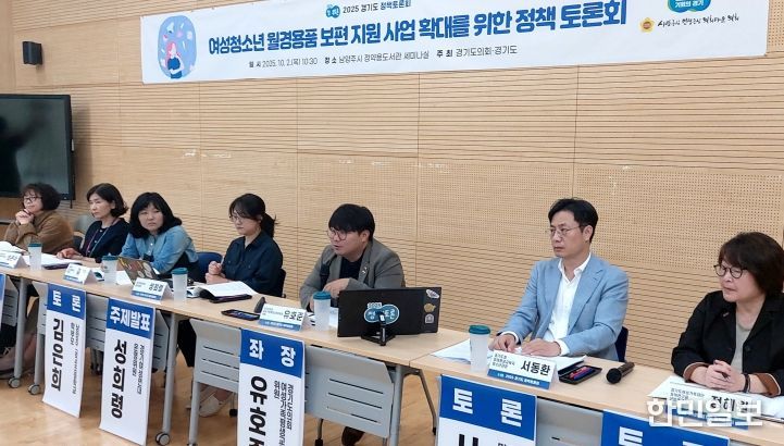 한민일보 서울포커스 김윤이 기자 | 유호준 경기도의회 여성가족평생교육위원회 위원장(더불어민주당, 남양주6)이 좌장을 맡은 '여성청소년 월경용품 보편 지원 사업 확대를 위한 토론회'가 10월 2일 남양주시 정약용도서관 세미나실 3층에서 개최됐다. 본 토론회는 경기도와 경기도의회가 공동으로 주최하는 ‘2025 경기도 정책토론회’의 일환으로 개최됐다.
