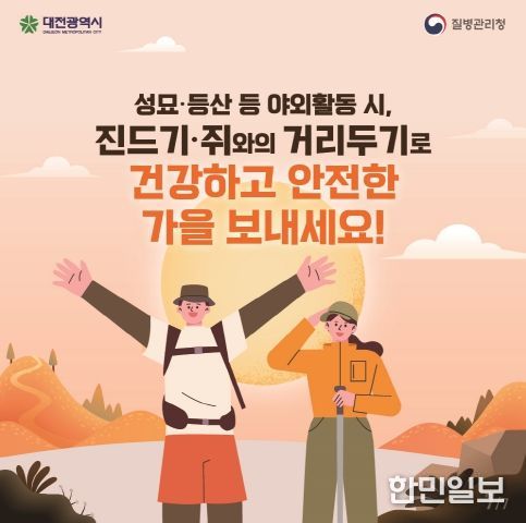 한민일보 서울포커스 유한희 기자 | 대전시는 성묘와 등산, 농작업 등 야외활동이 늘어나는 가을철을 맞아 시민들에게 진드기·설치류 매개 감염병 예방수칙 준수를 당부했다.