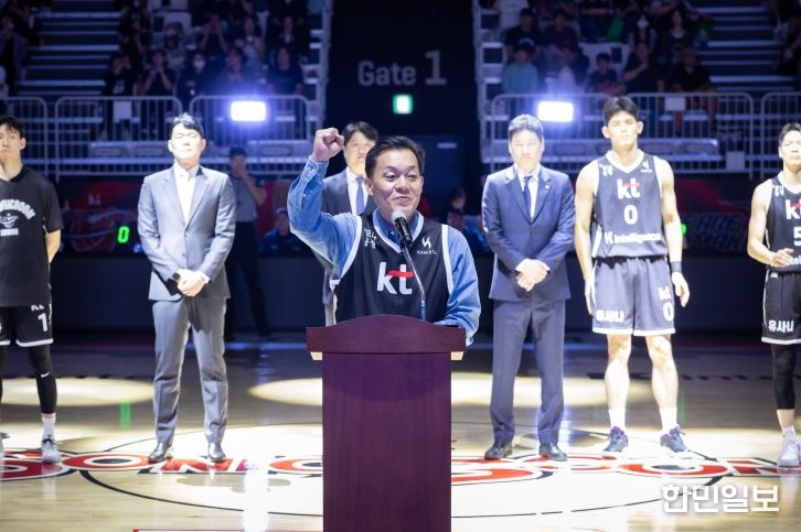 수원KT소닉붐과 부산KCC의 홈 개막전에서 축사를 한 이재준 시장은 “시민과 함께 수원KT 소닉붐의 우승을 기원하며 시민들과 함께 응원하겠다”고 말했다. 이재준 시장은 개막선언을 했다.