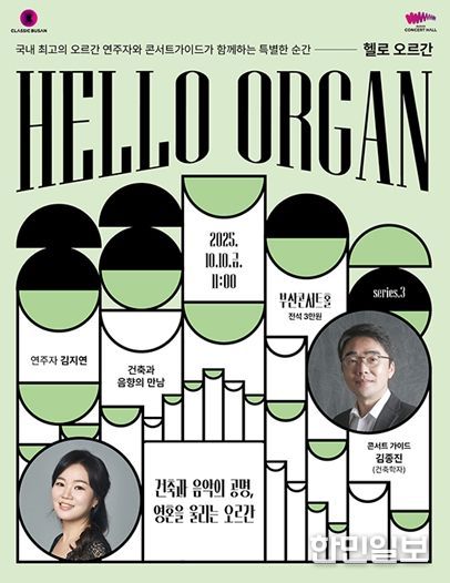 한민일보 서울포커스 임광현 기자 | 클래식부산은 내일(10일) 오전 11시, 부산콘서트홀에서 해설이 있는 입문형 오르간 콘서트〈헬로(HELLO) 오르간〉 시리즈의 세 번째 무대 '건축과 음향의 공명, 영혼을 울리는 오르간' 공연을 선보인다고 밝혔다.