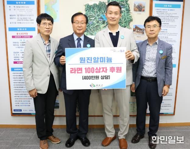한민일보 서울포커스 박용남 기자 | ㈜원진알미늄이 완주군에 라면 100상자(환가액 400만 원 상당)를 전달했다.