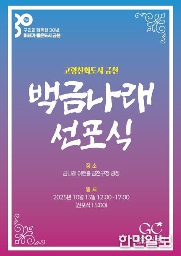 한민일보 서울포커스 곽중희 기자 | 금천구는 13일 오후 3시 금나래아트홀 공연장에서 ‘백금나래 선포식’을 연다고 밝혔다.