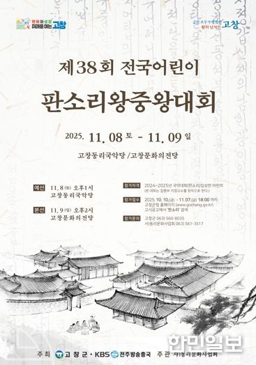 한민일보 서울포커스 박용남 기자 | 전북 고창군이 올해의 어린이 판소리 왕중왕을 가리는 ‘제38회 전국 어린이판소리왕중왕대회’ 참가자를 오는 11월7일까지 모집한다.