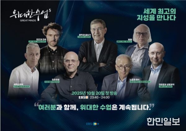 한민일보 서울포커스 기자 | EBS 대표 지식 강연 프로그램 ‘위대한 수업, 그레이트 마인즈’가 오는 10월 20일 다섯 번째 시즌으로 시청자 곁을 찾는다.