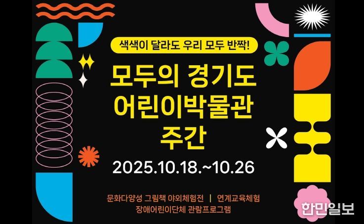 한민일보 서울포커스 김윤이 기자 | 경기문화재단 경기도어린이박물관(관장 박균수)은 오는 10월 18일부터 10월 26일까지 문화다양성 행사 〈색색이 달라도 우리 모두 반짝! 모두의 경기도어린이박물관 주간〉을 운영한다. 본 행사는 《문화다양성 그림책 야외체험전》, 유아 및 초등 어린이를 위한 연계프로그램, 장애어린이단체 맞춤형으로 개발된 접근성 콘텐츠를 활용한 관람프로그램 시범운영 등 총 3종으로 구성되어 다양한 모습의 관람객을 만나게 된다.