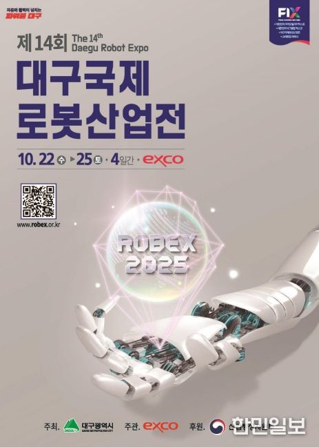한민일보 서울포커스 기자 | 최첨단 로봇 기술과 최신 트렌드를 한자리에서 만나볼 수 있는 로봇산업 전문 전시회 ‘2025 대구국제로봇산업전(ROBEX 2025)’이 오는 10월 22일부터 25일까지 4일간 엑스코에서 열린다.