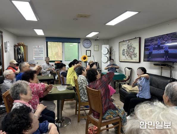 트로트 음악에 맞춰 강사 구령이 이어지자 경로당에는 웃음과 박수가 터져 나온다. 흥겨운 분위기 속에서 안전교육이 본격적으로 진행된다.