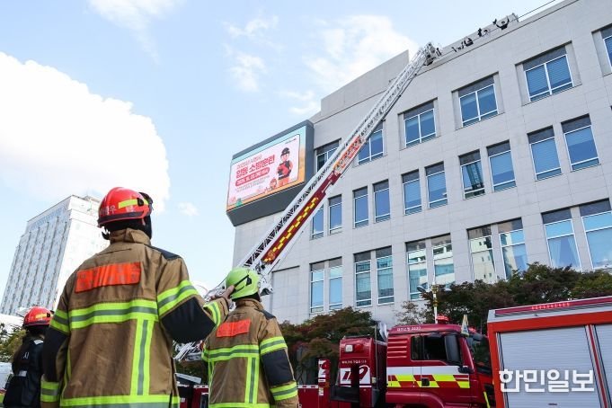 한민일보 서울포커스 유한희 기자 | 대전시는 23일 오후 3시 시청사 일원에서 둔산소방서와 합동으로 고층건물 화재 대응을 위한 합동훈련을 실시했다.