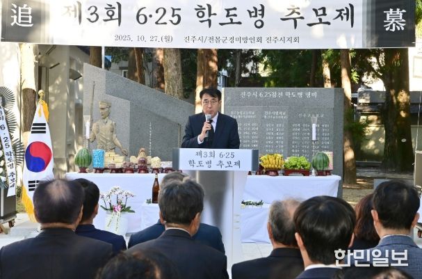 한민일보 서울포커스 김은금 기자 | 진주시는 27일 경상국립대학교 칠암캠퍼스의 ‘6·25참전 학도병 명비’ 앞에서 ‘제3회 6·25참전 학도병 추모제’를 거행했다.
