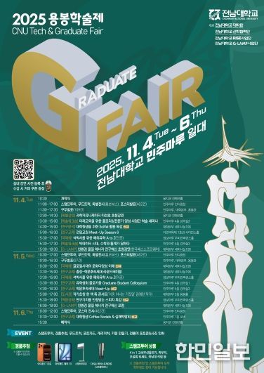 ‘G-Fair’는 오는 11월 4일부터 6일까지 전남대학교 민주마루와 용지관 일원에서 열리며, 대학원이 주관하는 대표 연구 전시·발표 행사다. 대학원생, 신진 연구자, 교수 등이 한자리에 모여 연구 성과를 발표하고 토론하는 학내 최대 규모의 학술 교류의 장이다.