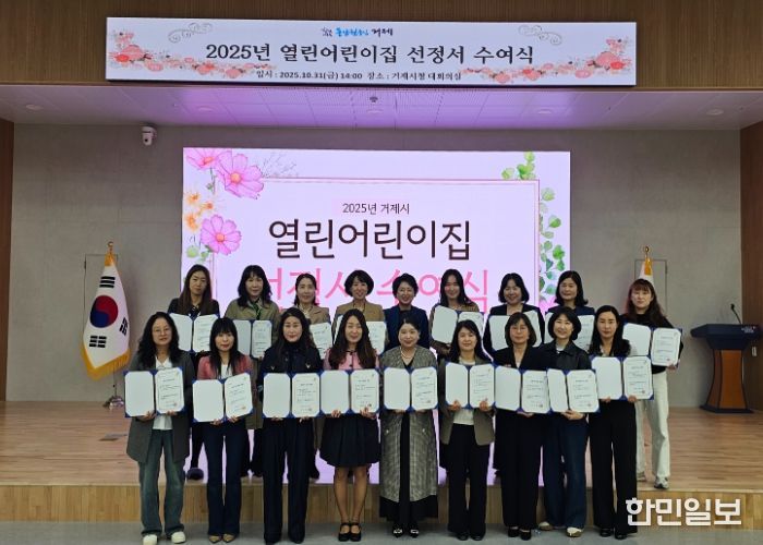 한민일보 서울포커스 김은금 기자 | 거제시는 10월 31일 거제시청 대회의실에서 ‘2025년 열린어린이집 선정서 수여식’을 개최했다.