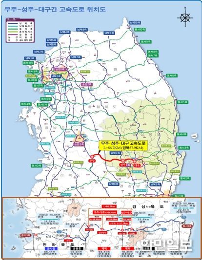 현재 영호남 연결 고속도로는 남해선과 광주대구선 2개 노선뿐으로 주로 영호남의 남부를 연결하고 있다. 무주~성주~대구 간 고속도로는 전북과 대구‧경북 등 영호남 중‧북부를 직접 연결해 영호남 화합을 도모하고 무주, 김천, 성주 등 낙후 지역 발전을 위해 필요한 사업이다.